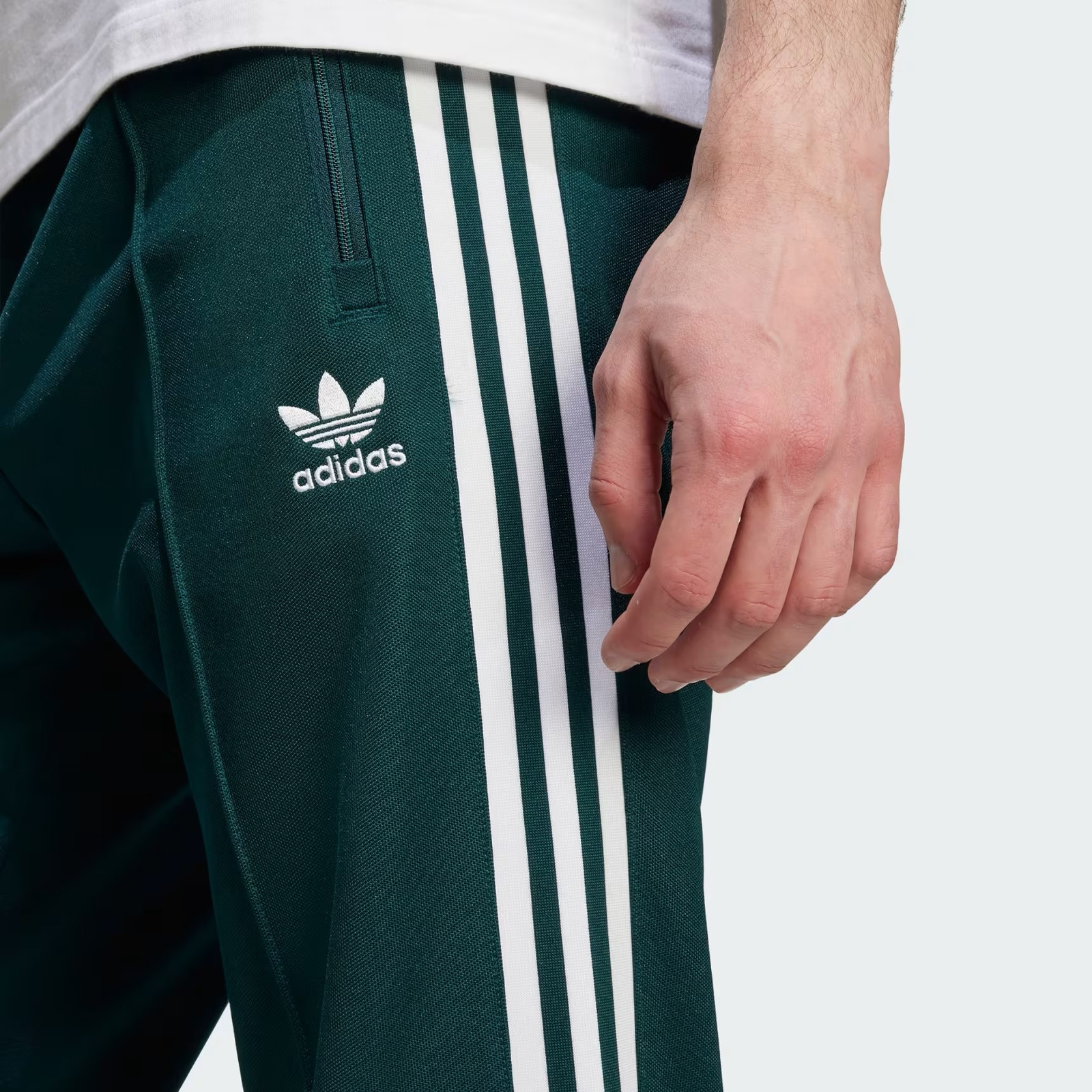 Charakterystyczne 3 paski wzdłuż nogawek oraz wyszywane logo Trefoil nadają całości klasyczny wygląd adidas Originals. Praktyczne kieszenie zapinane na suwak zwiększają funkcjonalność, dzięki czemu spodnie świetnie sprawdzą się zarówno na co dzień, jak i w luźniejszych, sportowych stylizacjach.